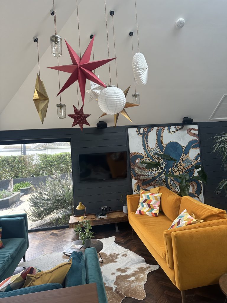 The cottage was really cool (said the boys!), decorated with bold colours, a huge octopus on the wall and hanging star lights.