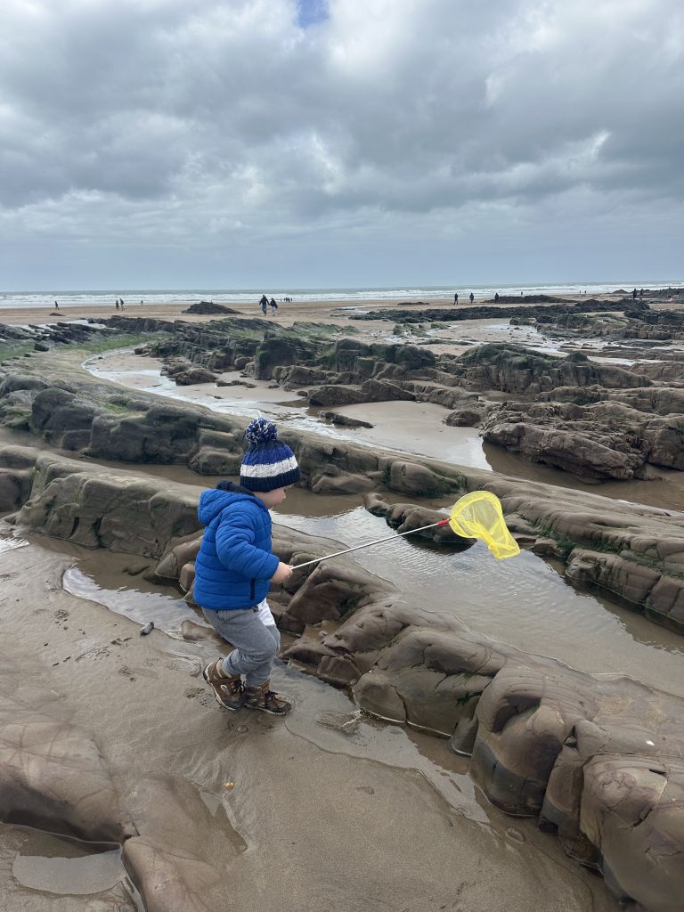 The next beach across is Crooklets beach. Another sandy smaller bay which is linked to Summerleaze when the tide is out. Plenty of rock pools between for trying your luck with the net. Safe to say we didn’t find anything.